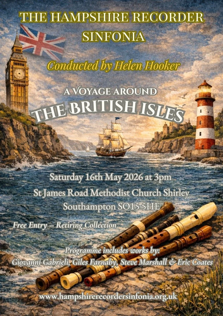 Saturday 16th May 2026 at 3pm - Hampshire Recorder Sinfonia concert at St. James Road Methodist Church, Shirley, Southampton.